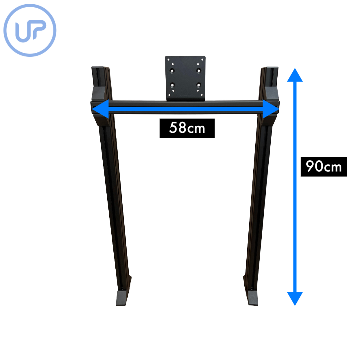 The R-Integrated Monitor Stand mounts directly on top of your base frame, so the total height of the stand when attached to our frame is 90cm + the height of your frame.