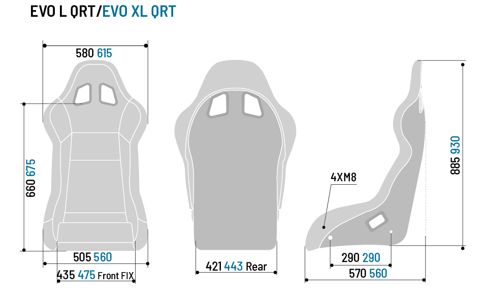 The Sparco EVO L QRT GAMING is a fantastic Sim Racing Seat, designed for medium-sized gamers. The EVO L being the middle of the range Sparco Evo seat (larger than the EVO but smaller than the EVO XL), this is the most popular variant, as it fits most people being neither too small nor too large, so just right! For specifics on the sizing of the EVO L, please see the BLACK dimensions in the sizing diagram below: