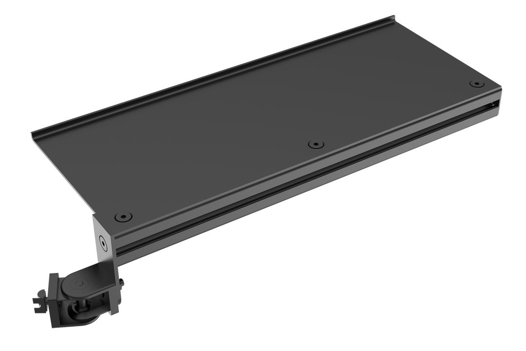 TR8020 universal adjustable keyboard tray upgrade kit is an adjustable keyboard tray that mounts directly to the left or right of your profile sim rig. It includes a lip to prevent the keyboard sliding down and suitable for most keyboards.