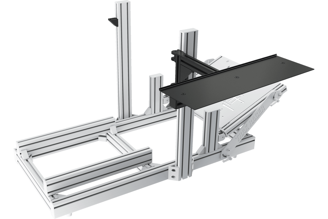 The Trak Racer table top allows you to swing your keyboard out of the way when not in use, and under the wheel mount when you need a desk.