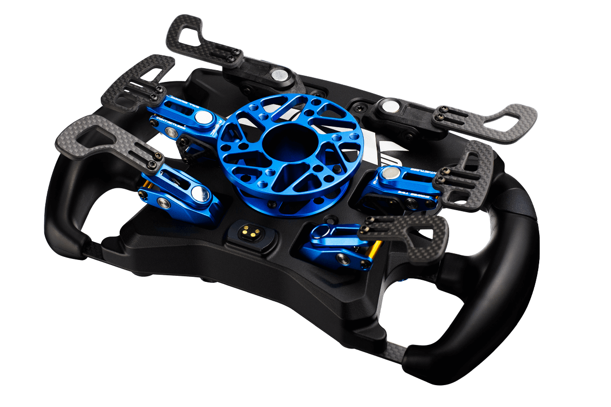 The Cube Controls CSX-3 comes with 4 paddles as standard and the wheel is available with either Black or Blue accent colouring. The wheel measures 282mm in length, grip-to-grip.