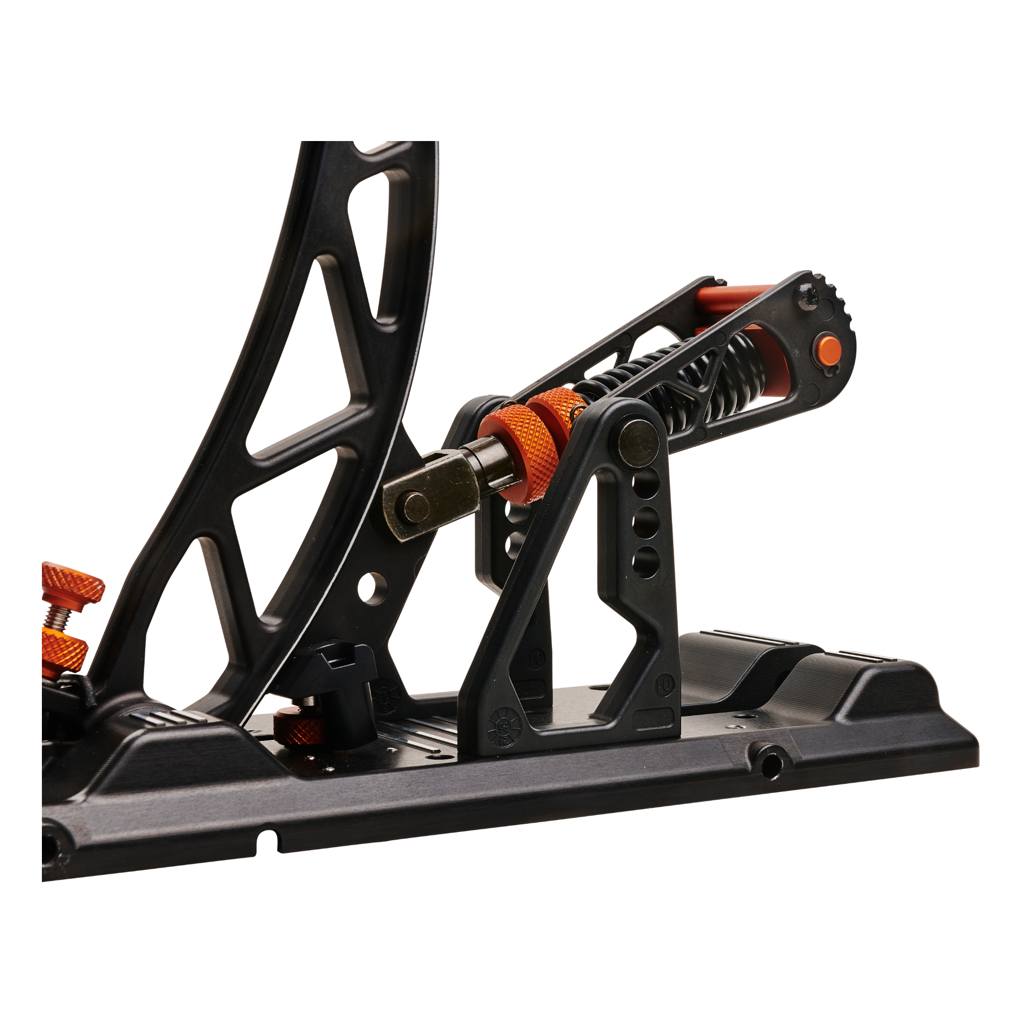 Die-cast high-quality pedal base with integrated heel rest and RGB LED that can be adjusted, dimmed or turned completely off in the RaceHub™ software