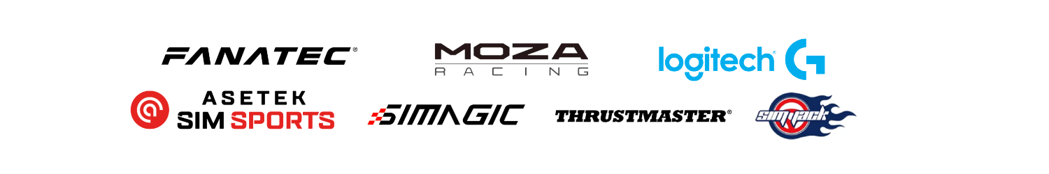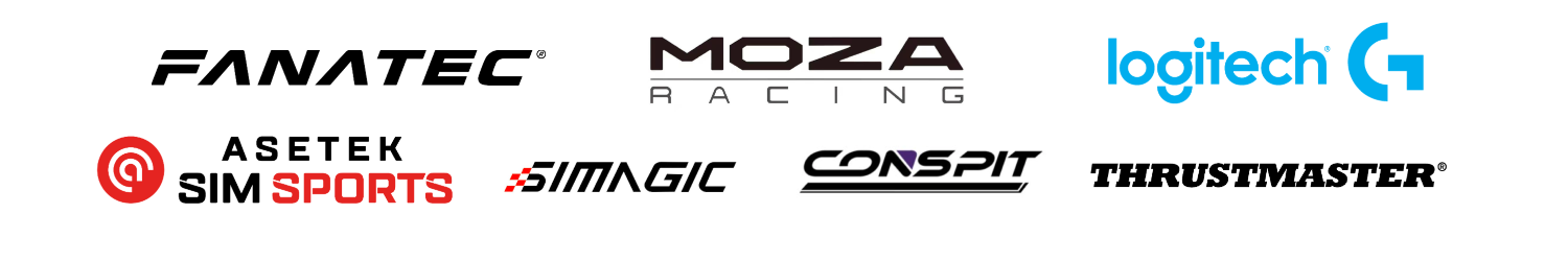 Compatible brands of pedals include Fanatec, Logitech, Moza, Asetek, Simagic, Thrustmaster and more.